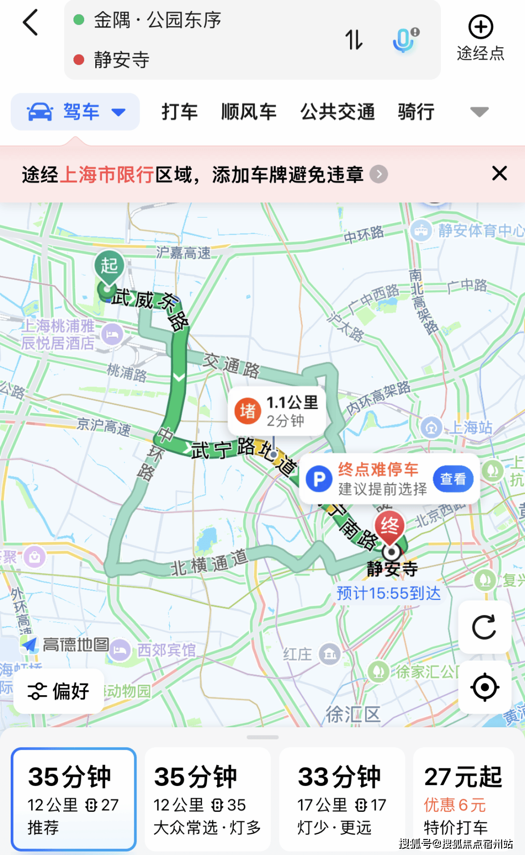 若是从项目自驾到同样位于北边的静安寺正在微堵车的环境下,